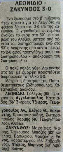 11-3-1998. ΛΕΩΝΙΔΙΟ -ΖΑΚΥΝΘΟΣ 3-0.
