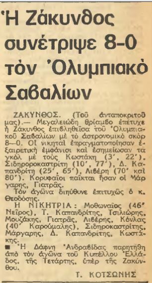 18-3-1973. ΖΑΚΥΝΘΟΣ-ΟΛΥΜΠΙΑΚΟΣ ΣΑΒΑΛΙΩΝ 8-0
