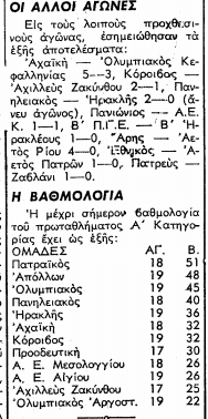 Για το πρωτάθλημα της Α΄ΕΠΣ Πατρών ο Κόροιβος Αμαλιάδος νίκησε τον Αχιλλέα Ζακύνθου με 2-1. Στο τέλος της σαιζόν όμως ο Αχιλλέας τον ξεπέρασε στην βαθμολογία ,όπως και την Α.Ε.Αιγίου και παρέμεινε στην κατηγορία. Είναι χαρακτηριστικό ότι από το 1965 ο Κόροιβος μετονομάστηκε σε Αστέρα Αμαλιάδος και ο Αχιλλέας σε Ζακυνθιακό.