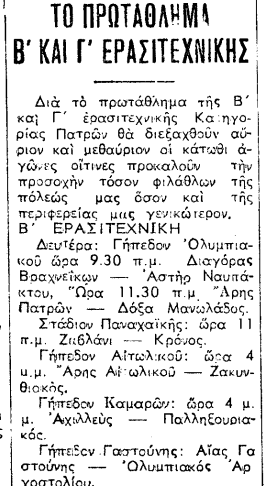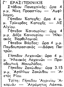 Για το πρωτάθλημα της Β΄ ΕΠΣ Πατρών ο Ζακυνθιακός έχασε 2-0 στο Αιτωλικό από τον Άρη ενώ για την Γ΄ ΕΠΣ Πατρών την ίδια ώρα στο Στάδιο ο Απόλλωνας νικούσε τον Αετό Ρίου με 4-3.