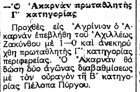30-4-1961. ΑΚΑΡΝΑΝ -ΑΧΙΛΛΕΥΣ 1-0