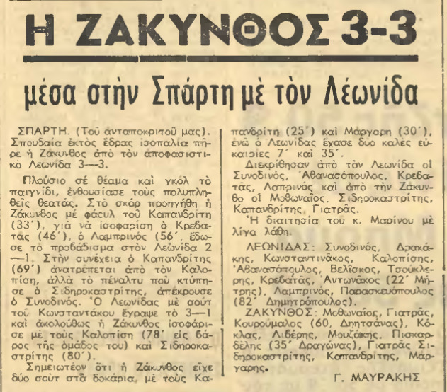 20-5-1973. ΛΕΩΝΙΔΑΣ ΣΠΑΡΤΗΣ -ΖΑΚΥΝΘΟΣ 3-3