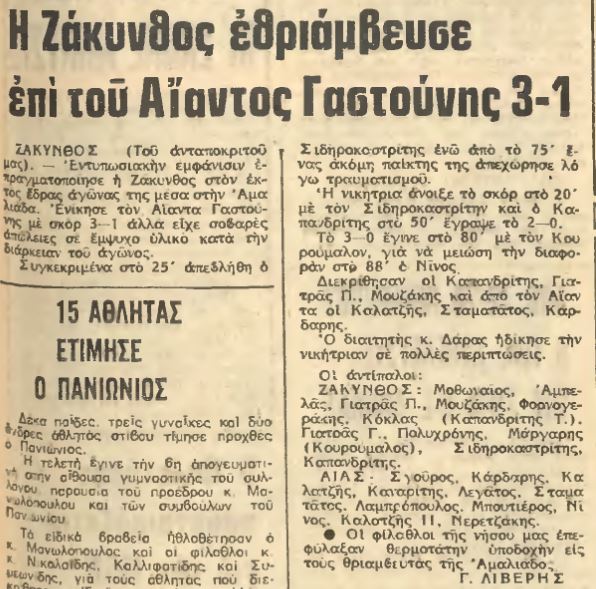 5-11 -1972. ΑΙΑΣ ΓΑΣΤΟΥΝΗΣ -ΖΑΚΥΝΘΟΣ 1-3