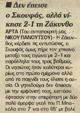 14-11-1993. ΖΑΚΥΝΘΟΣ -ΑΤΡΟΜΗΤΟΣ ΠΑΤΡΩΝ 4-2.