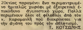 Από το Μάρτιο του 1962 που ξεκίνησαν τα επίσημα παιχνίδια στο Στάδιο δεν είχε γίνει το παραμικρό για τη βελτίωση του. Σχετική ήταν η επιστολή που έστειλαν μαζικά φίλαθλοι της Ζακύνθου στον υφυπουργό Αθλητισμού κ. Α. Καραμανλή για να φτιάξει το “χωράφι” όπως το αποκαλούν.