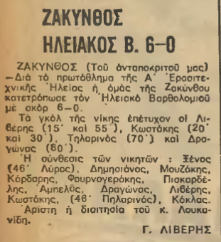15-11-1970. ΖΑΚΥΝΘΟΣ- ΗΛΕΙΑΚΟΣ ΒΑΡΘΟΛΟΜΙΟΥ 6-0