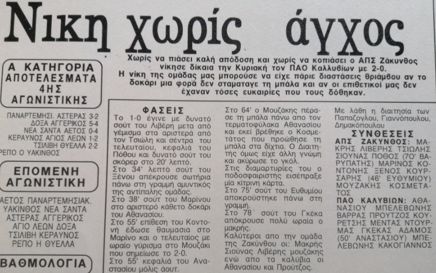 25-11-1990. ΖΑΚΥΝΘΟΣ -ΠΑΟ ΚΑΛΥΒΙΩΝ 2-0