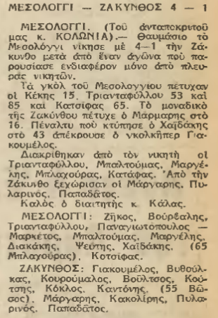 11-1-1981. Α.Ε.ΜΕΣΟΛΟΓΓΙΟΥ -ΖΑΚΥΝΘΟΣ 4-1.