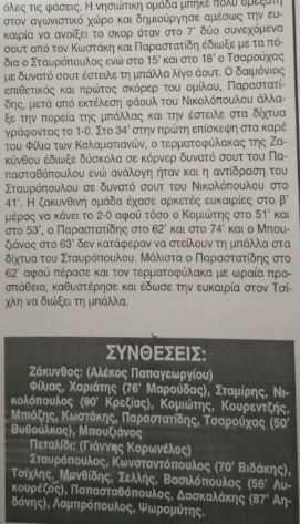 ΖΑΚΥΝΘΟΣ :(Π. Βασιλείου).Μάστακας, Πλαρινός, Παπαδάτος Π.(7΄λ. τρ.Τσεκούρας), Φυτόπουλος, Μπιάζης ,Ψάρρης, Γκρέκος, Κετικίδης, Τσάκουλης, Καλπακίδης (93΄Κονίδης),Τριανταφυλλίδης (55΄Φιορεντίνος).